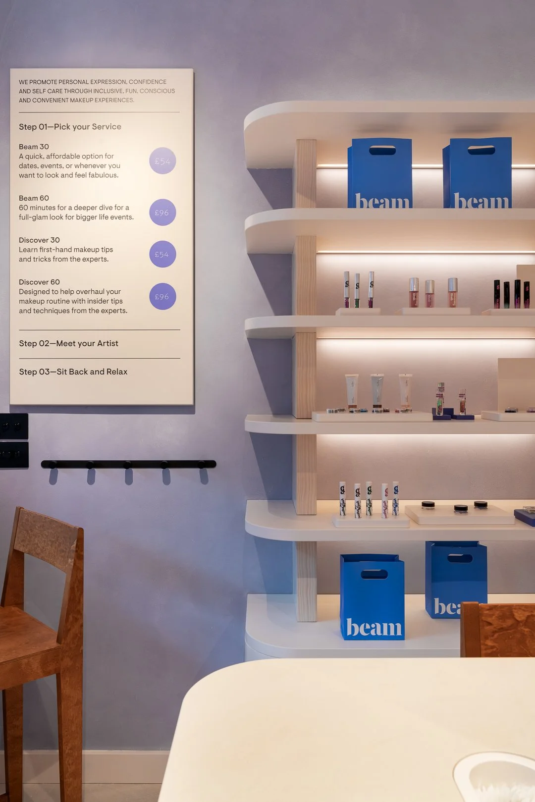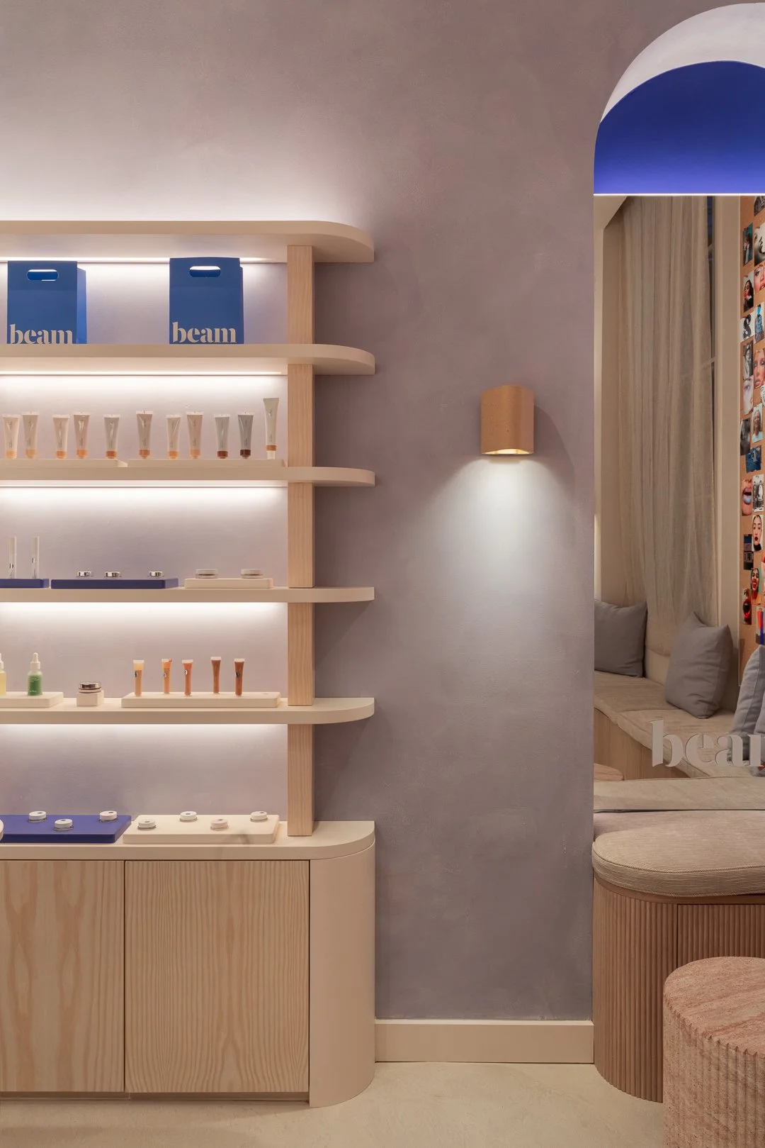 This project involved photographing the flagship retail store for beauty brand Beam, designed by EJ Studio. The space combines clean architectural lines with a soft, contemporary palette, creating a calm and carefully considered environment for the brand’s first physical retail presence.