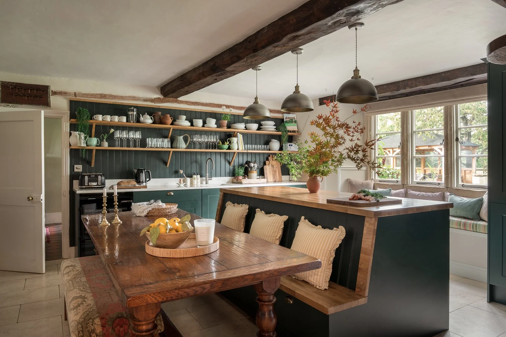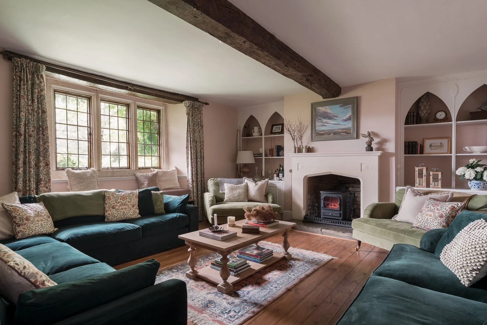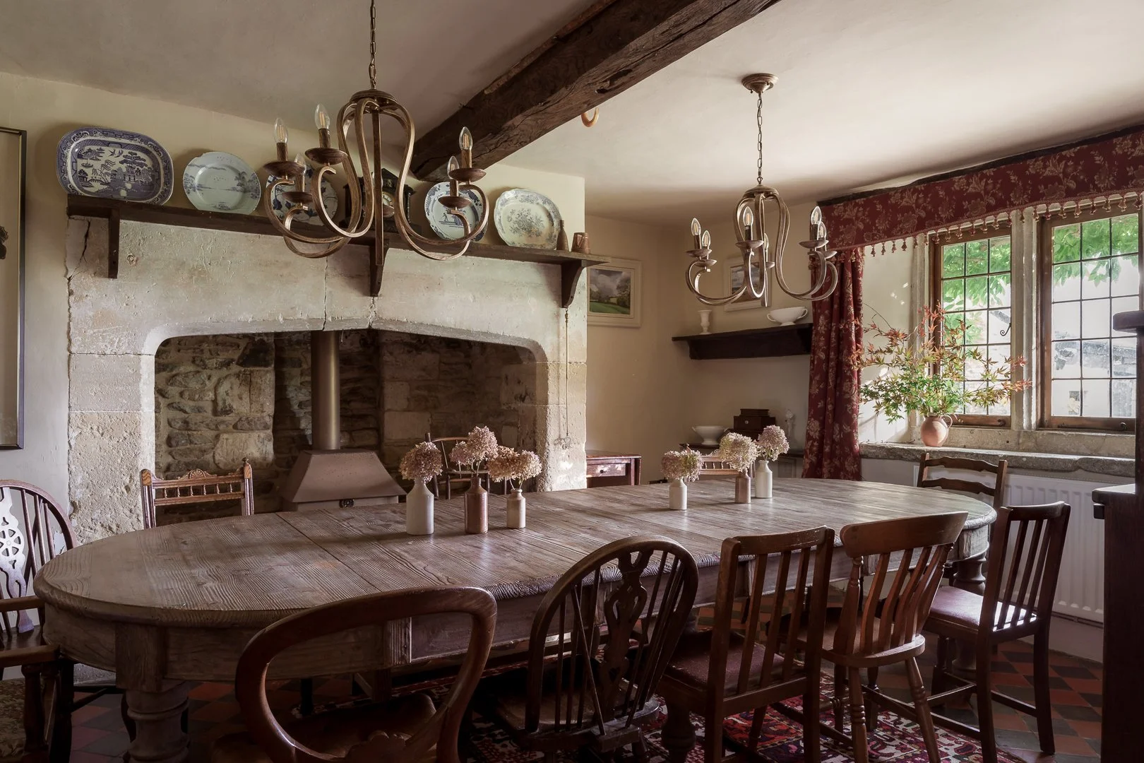 Set within the Wiltshire countryside, this beautifully restored farmhouse combines traditional Cotswold character with calm, thoughtfully layered interiors. Original features including exposed beams, stone fireplaces and generous proportions create a warm and inviting atmosphere throughout the house.