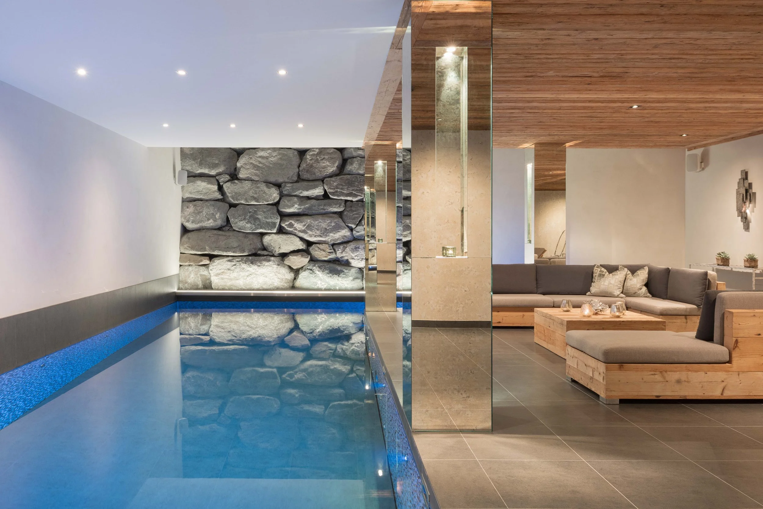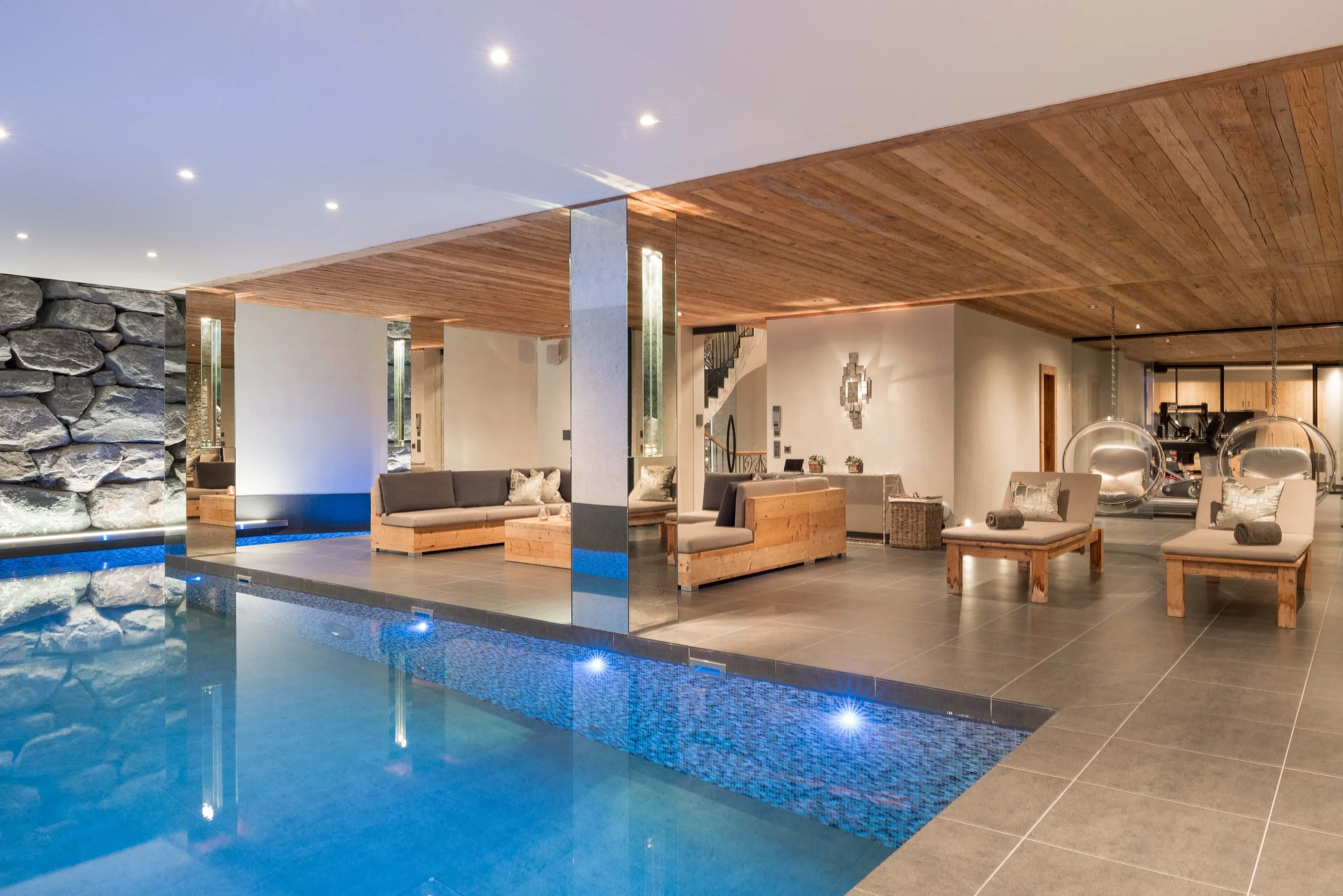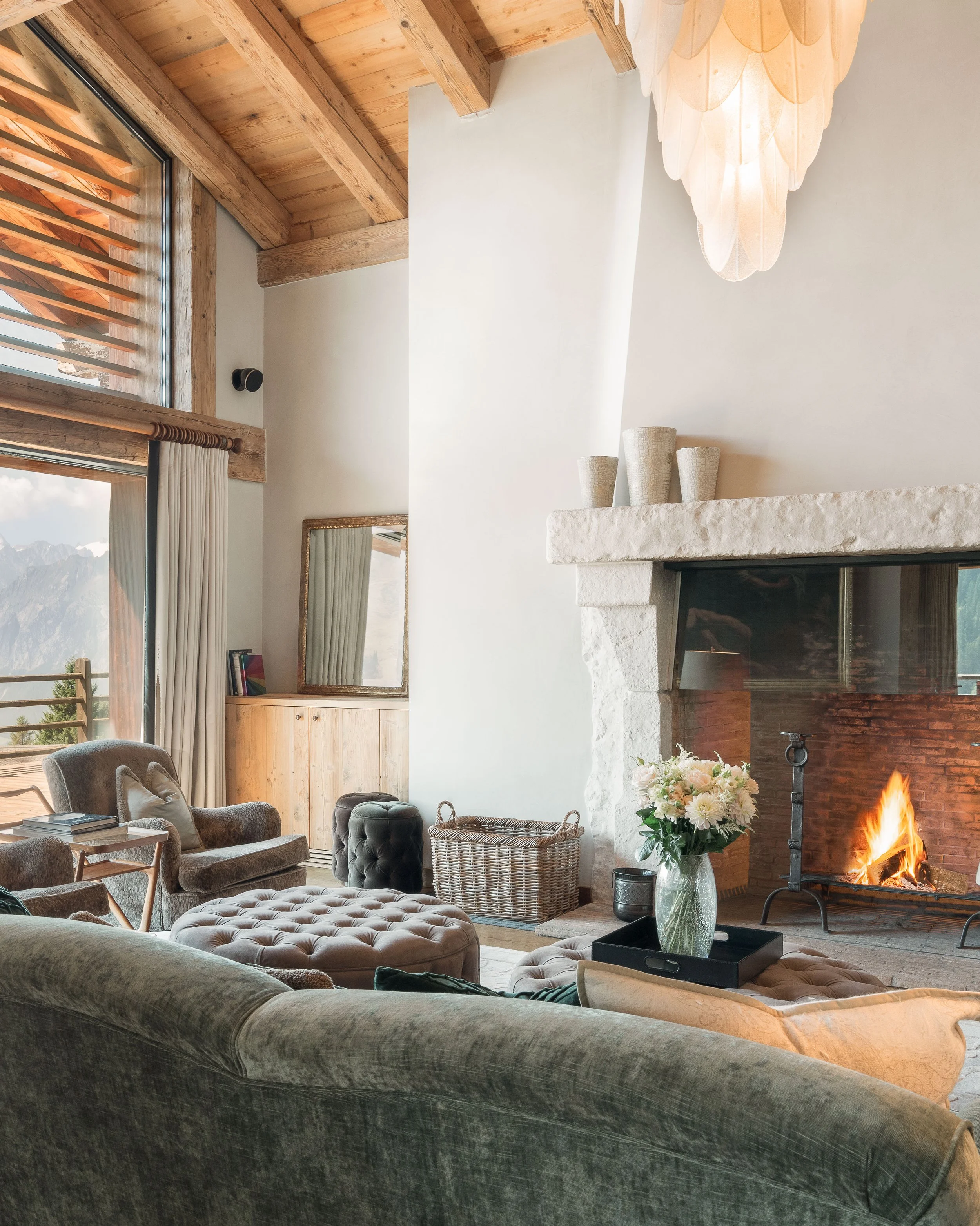 The brief for the shoot was to document the architectural character of the property while capturing the atmosphere of the living spaces throughout the day. From the double-height living room and dining area to the private spa and indoor pool, the photography focuses on the relationship between the warm timber interiors and the dramatic alpine landscape beyond.