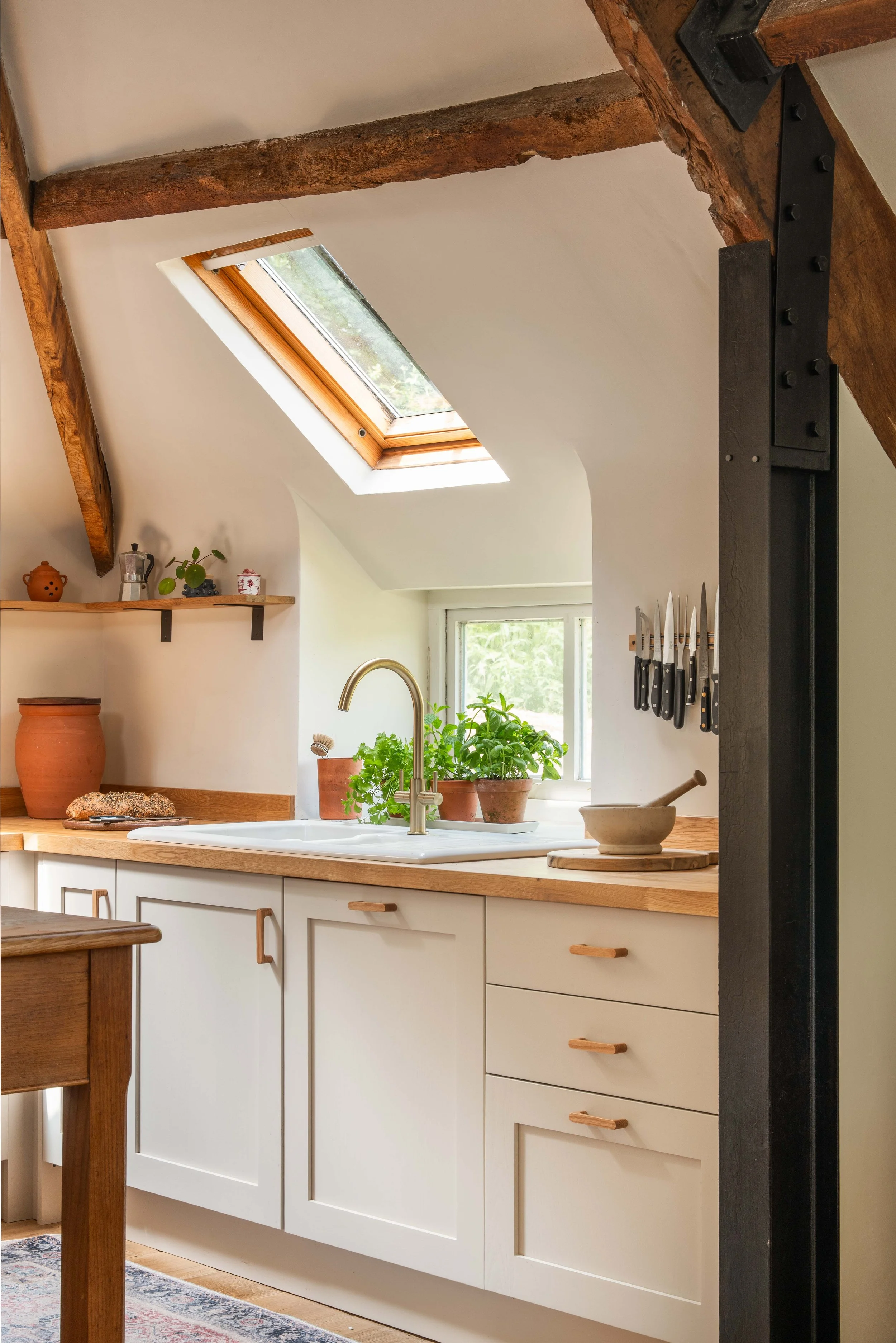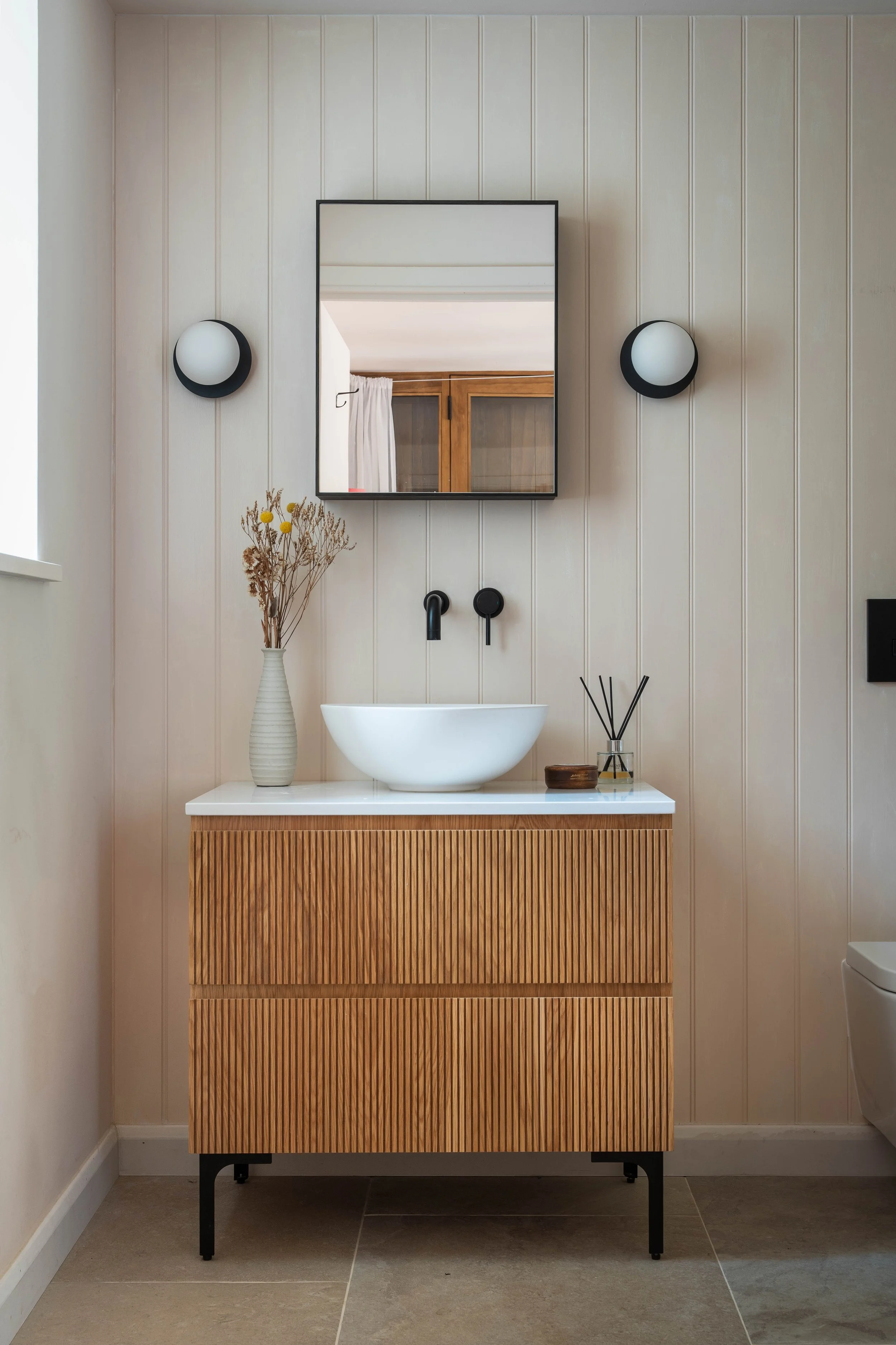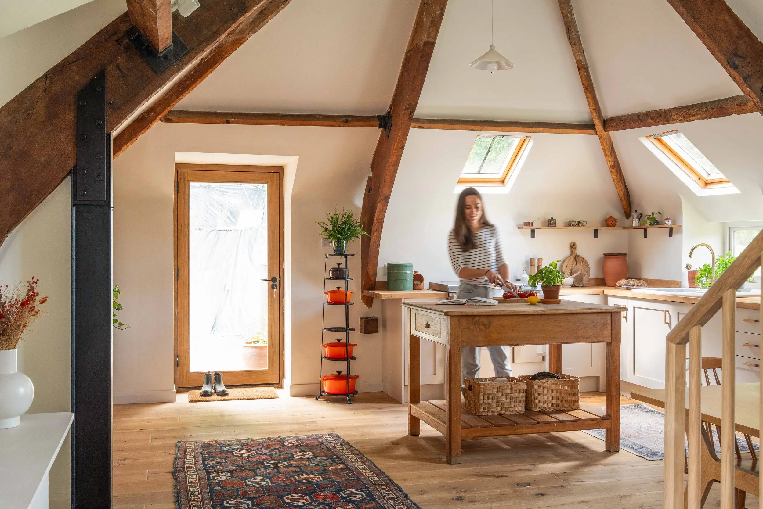 Rather than extending the building, the architects focused on making better use of the existing footprint, converting the former garage into a bedroom and reworking the internal layout to improve accessibility and flow. The resulting spaces combine traditional materials with calm, contemporary interiors while preserving the building’s historic fabric.
